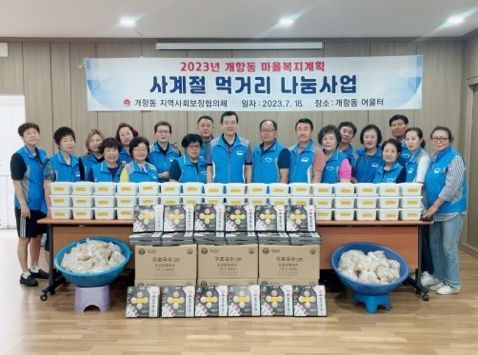 이무섭 개항동장은 “궂은 날씨에도 불구하고 참여해준 마을복지계획추진단원에게 감사드린다”라며 “어려운 이웃들이 정성스럽게 준비한 음식을 맛있게 드시고 기력 회복은 물론, 건강한 여름을 지내길 기원한다”라고 전했다.