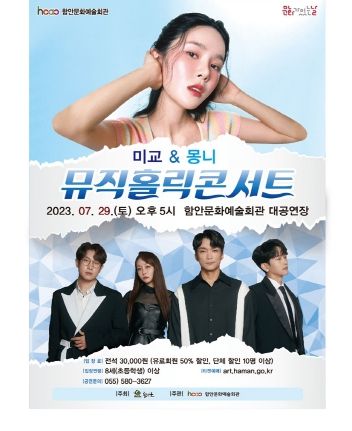 [제주교통복지신문 김강석 기자] 함안문화예술회관은 7월 문화가 있는 날을 맞아 오는 29일(토) 오후 5시 함안문화예술회관 대공연장에서 미교&몽니 뮤직홀릭콘서트를 개최한다.