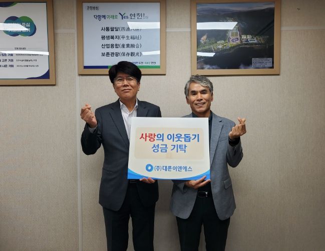 [제주교통복지신문 김강석 기자] (주)대륜이엔에스는 지난 18일 연천군청을 방문해 저소득층 지원을 위한 ‘사랑의 이웃돕기’ 성금 200만원을 전달했다.