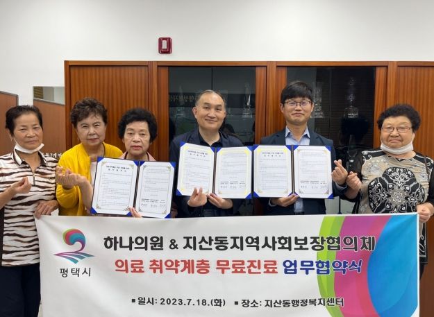 [제주교통복지신문 김강석 기자] 평택시 지산동 지역사회보장협의체는 지난 18일 지산동 소재 하나의원과 의료취약계층의 무료 진료를 위한 업무협약을 체결했다.