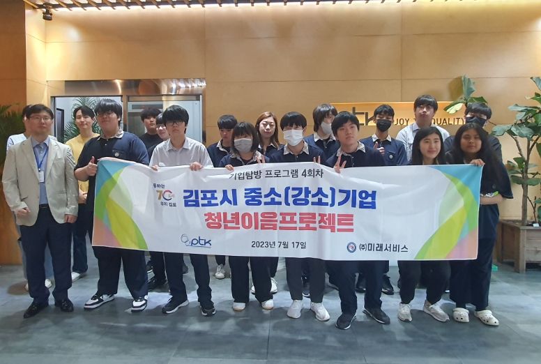 김포시는 이번 ‘중소(강소)기업 청년이음프로젝트’ 중 참가자들에게 Chat GPT를 활용한 입사서류 작성법과 비즈니스 매너 특강, 김포시 청년정책을 소개했다. (주)피티케이 측에서는 기업체 특강을 통해 생산 제품 소개, 채용절차 등에 관한 설명을 듣고 제품 생산 현장을 탐방하는 시간을 가졌다.