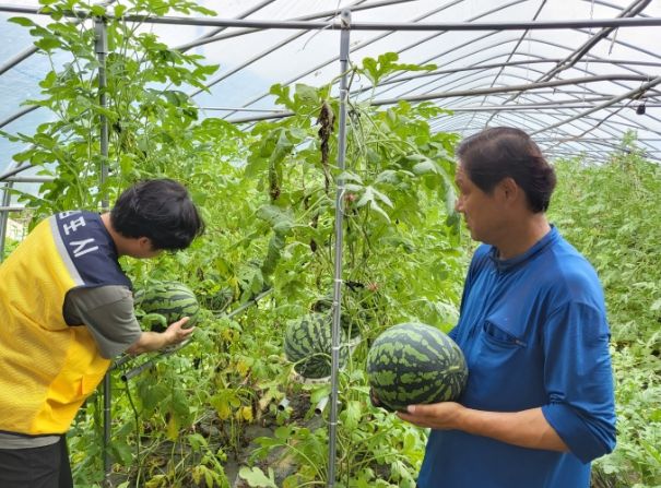 [제주교통복지신문 김강석 기자] 김포시농업기술센터(소장 황창하)는 수박 재배 시 쏟는 노동력 절감을 위해 농촌진흥청 신기술보급 사업인 ‘중소형 수박 생력화 수직재배 시범사업’을 보급할 예정으로, 본격적인 시행에 앞서 지난 17일 월곶면 포내리 임완기 농가에서 시범사업으로 얻은 수박을 처음 수확하는 뜻깊은 시간을 가졌다.