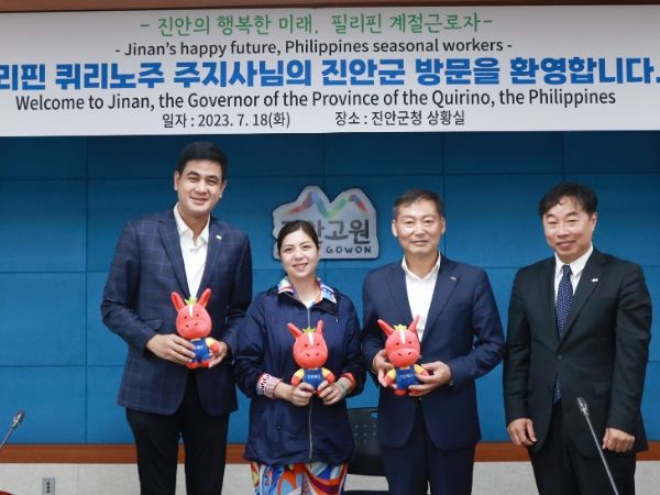 이에 다킬라 카를로 퀴리노주지사는 “진안군에서 먼저 업무 협약을 제시해주셔서 본국의 주민들이 양질의 일자리를 얻게 됨에 감사하다”며 “앞으로도 양 지자체간의 협력을 통해 우호 관계를 이어가길 바란다”고 말했다.