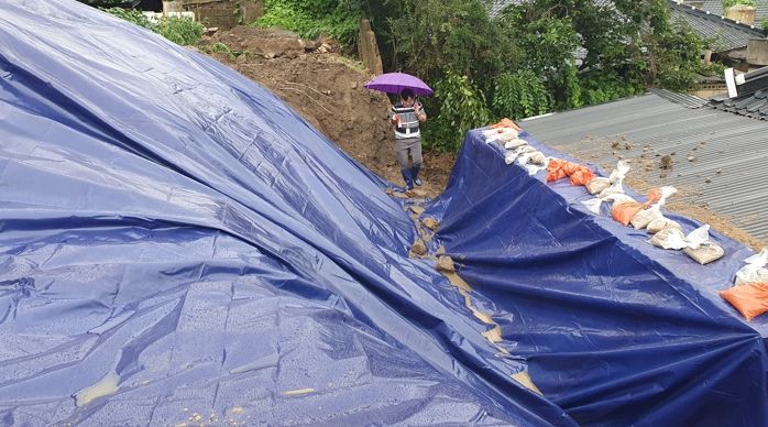17일 오전 10시께 주택 거주자의 신고로 현장에 출동한 수성동 관계자들은 긴급히 건설장비를 임차해 피해지역을 정비했다. 이후 오후 4시께 방수포 작업을 해 추가 토사유출 방지에 만전을 기했다.