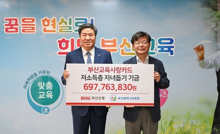 [제주교통복지신문 김강석 기자] 부산광역시교육청은 19일 오전 11시 시교육청 행정국장실에서 부산은행으로부터 2022년도분 부산교육사랑카드 기금 6억 9,776만 원을 전달받았다.