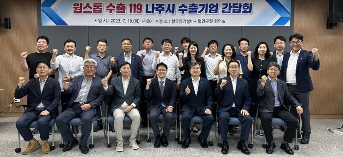 나주시는 기재부 원스톱 수출·수주 지원단이 전날 나주혁신산업단지 한국전기설비시험연구원에서 ‘제4차 원스톱 수출119’를 개최했다고 19일 밝혔다.
