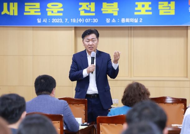 전북도는 19일 오전 7시 30분 도청 중회의실에서 김관영 도지사가 부지사, 실·국장 등 간부 공무원과 관련 출연기관장 및 직원 70여 명과 함께 ‘7월 새로운 전북 포럼’을 열고, ‘데이터 기반 바이오 소재 산업화’를 주제로 공부와 열띤 토론을 펼치는 시간을 가졌다고 밝혔다.