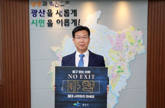 [제주교통복지신문 김강석 기자] 박병규 광산구청장이 19일 최근 급증하고 있는 마약 중독에 대한 경각심을 일깨우기 위해 ‘출구 없는 미로(NO EXIT)’ 캠페인에 동참했다.