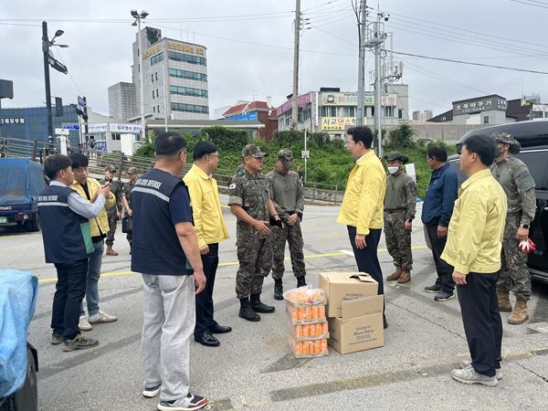 원강수 원주시장은 “호우 피해 복구 작업에 를 위하여 흔쾌히 참여해주신 하헌철 제36보병사단장님과 군 관계자 여러분께 진심으로 감사드린다”며, “집중 호우로 인한 피해를 신속히 복구하고 재난 예방 및 대응 활동을 더욱 강화하여 주민들의 피해가 최소화될 수 있도록 총력을 기울이겠다.”