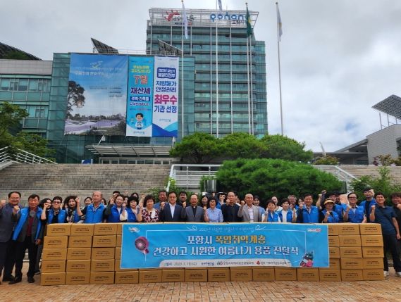 [제주교통복지신문 김강석 기자] 포항시 지역사회보장협의체는 19일 시청 앞 광장에서 ‘시원한 여름나기’를 위한 물품 전달식을 진행했다.