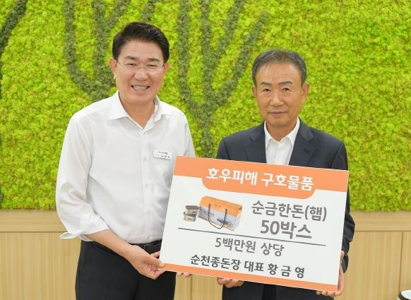 [제주교통복지신문 김강석 기자] 순천종돈장은 19일 지속된 집중호우로 피해를 입은 주민들을 위해 축산물 가공품 순금한돈(햄) 50박스(500만 원 상당)를 순천시에 기탁했다.