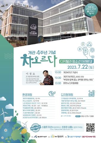 환경퀴즈, 환경 보드게임, 스마트 팜 등의 체험활동과 울산 디지털 배움터와 협력하여 블록코딩, 메타버스, 메이키메이키, 3D펜 체험 등 다양한 디지털 체험을 제공할 예정이다.