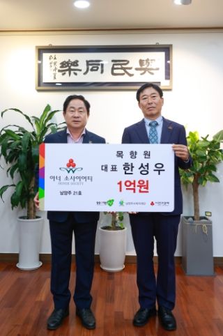 [제주교통복지신문 김강석 기자] 남양주시 별내동 소재 목향원 한성우 대표는 19일 지역 내 어려운 이웃을 돕기 위해 1억 원 기부를 약정하며 ‘아너 소사이어티’에 가입했다.