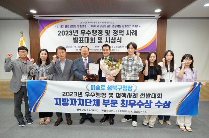 [제주교통복지신문 김강석 기자] 서울 성북구가 ‘2023년 우수행정 및 정책사례 선발대회’ 지방자치단체 부문 최우수상을 수상했다.