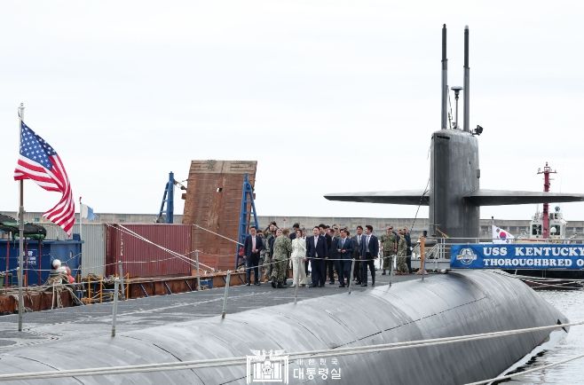 대통령은 7월 18일 용산 대통령실에서 개최된 한미 핵협의그룹(NCG) 참석자 및 한미 군 주요직위자들과 함께 켄터키함 내부의 지휘통제실, 미사일통제실, 미사일저장고 등을 순시했으며, 켄터키함 함장으로부터 핵잠수함의 능력에 대해 보고받았다. 대통령은 "미국의 가장 중요한 핵전략자산을 직접 눈으로 보니 안심이 된다"며 북핵위협에 대한 한미 연합대응능력에 자신감을 보였다. 대통령은 또 “현존하는 가장 강력한 전략자산 중 하나인 미국의 SSBN 켄터키함에 방문하게 되어 뜻깊고 정말 든든하다”고 말하며, “이번 켄터키함의 전개는 미국의 전략자산을 정례적으로 전개하고 확장억제 실행력을 강화하기 위한 한미 양국의 의지를 잘 보여주었다”고 말했다.