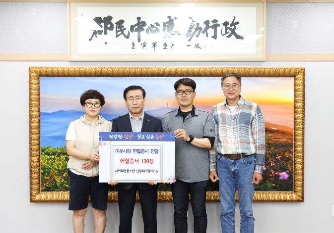 김 이사장은 지난 19일 군을 방문해 혈액 수급난 극복을 위해 사용해달라며 헌혈증을 기탁했다.