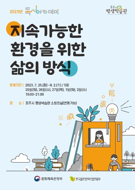 [제주교통복지신문 김강석 기자] 충주시는 ‘지속가능한 환경을 위한 삶의 방식’이라는 주제로 평생학습관에서 인문학 특강을 오는 25일부터 8월 2일까지 운영한다고 밝혔다.