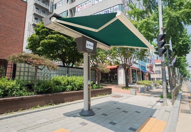 새로 설치될 스마트그늘막에는 사물인터넷(IoT) 기술을 접목한 다기능시스템이 도입됐다. 온 · 습도와 조도, 풍향 센서를 통해 생성된 환경정보를 분석해 자동으로 개폐하고, 관리자도 휴대폰 앱으로 실시간 원격 제어할 수 있어 태풍 등 기상악화 시 신속한 대처가 가능하다. 또한 태양광 전원공급 장치가 내장된 친환경에너지 시설물로 유지 관리비 절약에도 기여할 것으로 보인다.