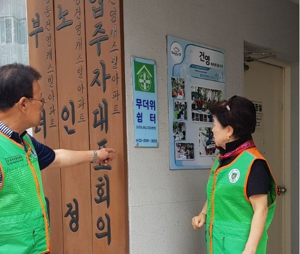 구는 행정안전부 지침에 따라 무더위쉼터 담당제를 지역 내 경로당 무더위쉼터 131개소와 자율방재단 점검반을 매칭, 직접 방문을 통한 ▲냉방기기 작동여부 ▲안내표지판 부착여부 등 시설물 운영상태를 점검한다.
