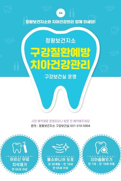 이 밖에도 정왕보건지소 구강보건실에서는 만 36개월~만 18세, 만 65세 이상의 시민을 대상으로 불소바니쉬 도포 서비스도 시행하고 있다.