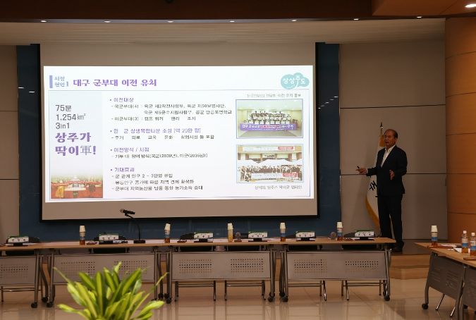 먼저 문화예술회관 이전, 적십자병원 신·증축 등, 도심을 밀도감있게 기능 위주로 재구조화하여 ‘작아도 강한 미래도시’로의 발전 기반을 다지고, 시청 및 시의회 통합 신청사 건립을 미래상주 건설의 핵심이자 선결과제로 삼고 혁신적인 복합행정 공간이자 시민들이 함께 모여 어우러지는 광장으로 조성하겠다고 말했다.