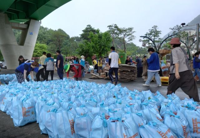 가공식품 꾸러미를 만드는 작업에 괴산군자원봉사센터, 괴산민주평통자문위원회, 괴산군의회 등 많은 군민이 도움을 주었다.