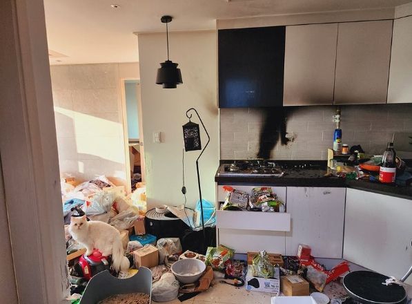 불은 출동한 소방대에 의해 진화됐으며, 주방 벽면 일부가 그을리고 가스레인지와 냄비 등 일부가 소실됐다. 다행히 인명피해는 없었다. 화재조사 결과, 불이 난 가스레인지는 원터치 점화 방식으로 가정에서 키우던 고양이가 싱크대 위에 있는 사료를 먹기 위해 뛰어오르던 찰나 가스레인지 점화 레버를 밟고 미끄러지면서 점화 스위치가 작동한 것으로 밝혀졌다.