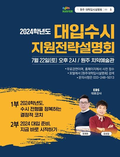이번 설명회는 지난 3월에 이어 두 번째로, EBS 강사진으로 구성된 최고의 입시전문가들이 2024학년도 수시 모집 전형을 체계적으로 분석하고 수시 전형별 대비 전략 등을 구체적으로 제시할 예정이다.