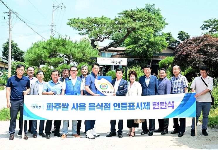 파주시는 파주쌀의 내수소비 증진 및 소비자에게 파주쌀 사용 음식점 정보를 제공하는 ‘파주쌀 사용 음식점 인증표시제’를 실시함에 따라 연중 파주쌀을 사용하는 음식점 20곳을 선정해 인증표시판을 부착했다.