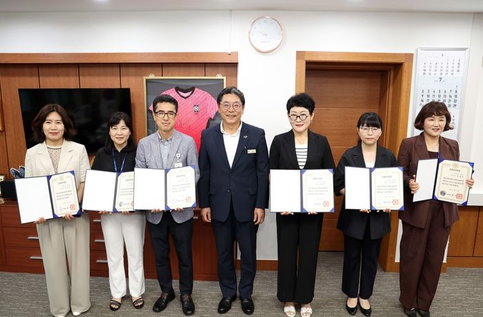 홍태용 시장은 지난 19일 집무실에서 모범공무원으로 선정된 박진수 예산팀장, 강경미 공보팀장, 김양희 공무직팀장, 정원희 위생정책팀장, 김동숙 정신보건팀장, 김미옥 지역보건팀장에게 모범공무원증과 정부 표장을 전수했다.