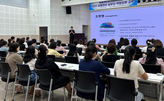 이날 강사로 초빙된 최배정 현대사랑병원 진료부 원장은 ‘조현병의 이해와 접근’을 주제로 조현병 등 정신적 어려움을 가진 대상자의 사례개입 방법 등 사례관리 적용에 중점을 두고 교육해 사례관리 실무에 대한 역량을 한층 높이는 계기가 됐다.