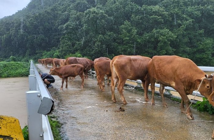 해당 축산농가는 약 700마리에 달하는 소를 키우던 곳으로 지난 15일 축사에 빗물이 들어차면서 500마리 넘는 소를 인근 야산으로 긴박하게 올려보냈다. 100여 마리는 폐사했다.