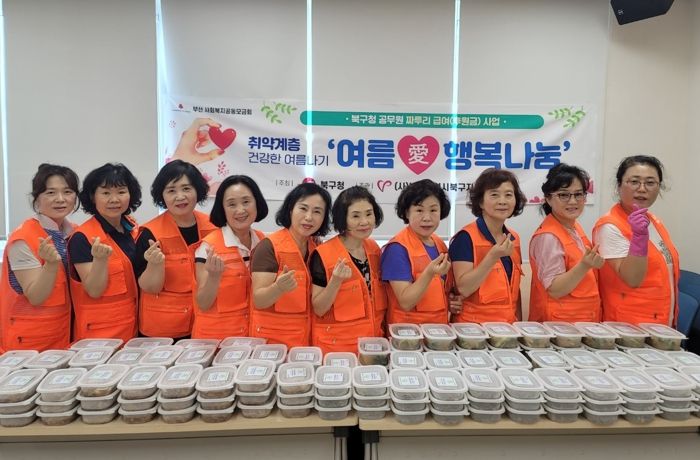 이번 사업은 북구청 공무원 짜투리 급여(후원금) 사업의 일환으로, 구포2동 자원봉사캠프 자원봉사자들이 직접 돼지불고기, 멸치볶음, 열무김치 등 다양한 반찬을 손수 조리하여 관내 취약계층 주민들에게 전달하면서 건강한 여름을 보내도록 격려하며 안부를 전했다.