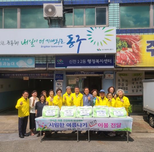[제주교통복지신문 김강석 기자] 대구 동구 신천1.2동 지역사회보장협의체, 민간사회안전망은 지난 19일 여름철 폭염으로 무더위에 취약한 관내 30가구에게 시원한 여름이불을 전달했다.