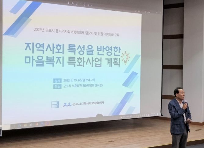 [제주교통복지신문 김강석 기자] 군포시는 군포시지역사회보장협의체 주관으로 7월 19일 보훈회관 3층 민방위교육장에서 군포시 12개 동지역사회보장협의체 위원 및 사업담당 공무원 140명을 대상으로 역량강화 교육을 실시했다.