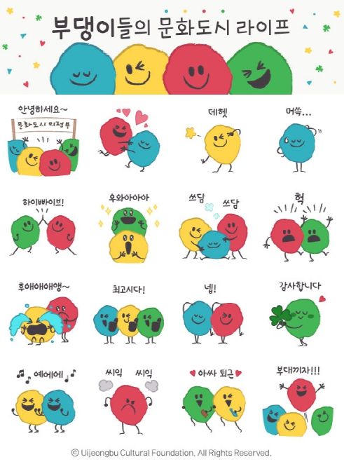 이모티콘은 '문화도시의정부' 카카오톡 채널을 친구로 등록한 사람들을 대상으로 배포했으며 배포된 16종의 이모티콘은 30일간 무료로 사용할 수 있다.