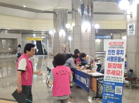 인천시는 ‘2025 APEC 정상회의‧인천고등법원‧해사전문법원 인천 유치’를 위해 지난 5월부터 올해 11월까지 범시민 100만 서명운동을 진행 중이며, 특히 5~7월 집중 서명 기간을 운영해 조기 목표 달성을 위해 노력하고 있다.