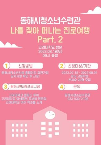 이번 현장 탐방은 내달 19일 고려대학교를 방문, 캠퍼스 투어 프로그램을 통해 공부법 및 입학과 관련하여 멘토링을 받고 여러 학과를 소개받는 순서로 진행된다.