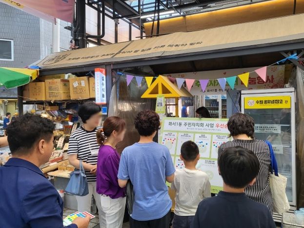 화서1동 주민자치회는 내년도 추진 사업을 계획하는 과정에서 실제로 주민들의 입장에서 생각하기 위해 화서시장을 찾았다. 이날 낮에 진행된 설문조사 현장에는 이른 장을 보기 위해 오가는 주민들이 모였으며, 주변 상점을 지키던 상인들도 관심을 보이고 스티커를 붙이며 우선 순위를 결정하는 데 손을 보탰다.