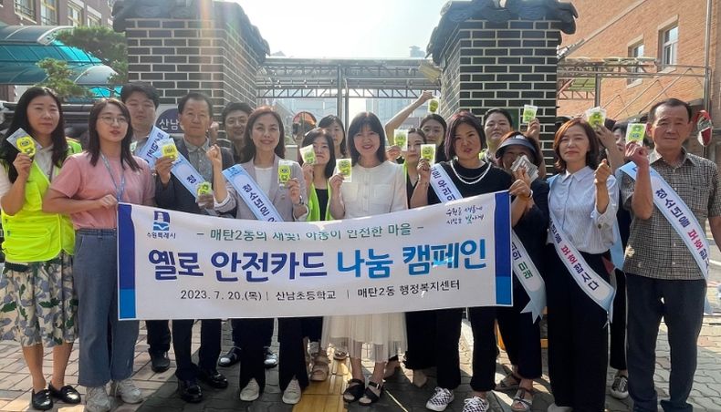 매탄2동‘옐로 안전카드 캠페인’은 2023년도 수원시 주민참여예산사업으로 선정된 사업으로 이 날 학부모운영위원회, 주민자치회 회원들은 관내 초등학생을 대상으로 옐로카드를 등굣길에 배부했다.