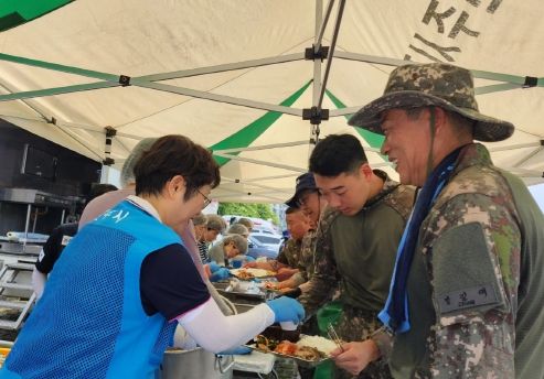센터는 이날 조속한 폭우 피해 복구를 위해 애쓰는 군인 등 복구 인력에 도움을 주기 위해 행복한밥상 푸드봉사단 등 봉사자 40여 명과 뜻을 모아 정성껏 준비한 돼지고기 김치찌개와 소불고기 등 점심 230인분과 간식(수박) 등을 제공했다.