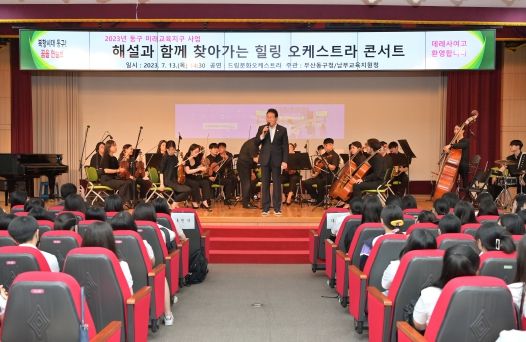 [제주교통복지신문 김강석 기자] 부산 동구는 지난 7월 13일(동구청 1층 대강당)과 14일(수성초등학교 강당) 공교육 지원을 통해 함께 성장하는 교육생태계 조성을 위하여 2023 미래교육지구 사업 '해설과 함께 찾아가는 힐링 오케스트라 콘서트'를 개최했다.