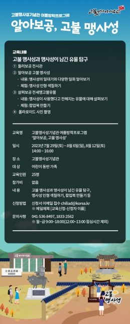 [제주교통복지신문 김강석 기자] 아산시는 여름방학을 맞아 오는 29일부터 다음 달 12일까지 고불맹사성기념관에서 여름방학 프로그램을 운영한다고 밝혔다.