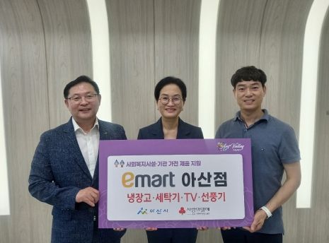 [제주교통복지신문 김강석 기자] 아산시(시장 박경귀)는 이마트 아산점으로부터 사회복지시설 지원을 위한 400만 원 상당의 가전제품 등을 후원받았다고 밝혔다.