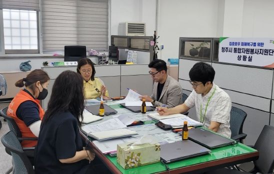 통합자원봉사단은 청주시, 청주시자원봉사센터, 대한적십자사 충북지사, 청주시 자율방재단, 청주시 새마을회, 바르게살기운동 청주시협의회로 구성돼, 피해가 심각한 재난 상황에 가동하는 지원 체계다.