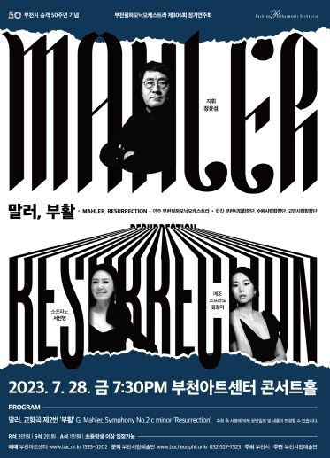 아울러 이번 공연은 부천필의 말러, 부천아트센터의 파이프 오르간, 부천시 승격 50주년이라는 3박자가 맞아떨어지는 빅 이벤트로, 그 의미가 더욱 특별하여 많은 클래식 팬들의 기대를 모을 것으로 보인다. 부천필하모닉오케스트라 제306회 정기연주회 – 부천시 승격 50주년 기념 '말러, 부활'은 2023년 7월 28일 오후 7시 30분 부천아트센터 콘서트홀에서 만나볼 수 있다. 말러 스페셜리스트 부천필의 귀환을 오감으로 느껴볼 수 있는 시간이 될 것이다.