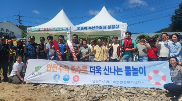 [제주교통복지신문 김강석 기자] 남양주시 화도수동행정복지센터는 지난 19일 여름철 물놀이 시즌을 맞아 구암리 구운천 황새바위 계곡에서 경찰, 교육청, 남양주시 재난구조협회 및 화도읍 이장협의회와 함께 지역주민을 대상으로 물놀이 안전 캠페인을 실시했다.