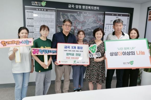 이번 장학금 후원에는 금곡동 김영두 7통 통장, 한연희 14통 통장, 최서연 17통 통장, 박혜자 27통 통장, 여구일 28통 통장이 참여했다.
