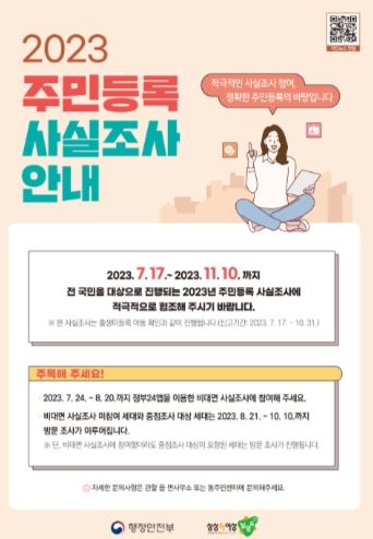 주민등록 사실조사는 비대면-디지털 조사(7.24.∼8.20.)를 진행한 이후, 이·통장 및 읍·면·동 공무원이 거주지에 방문하여 확인하는 방식으로 조사(8.21.∼10.10.)가 진행된다.