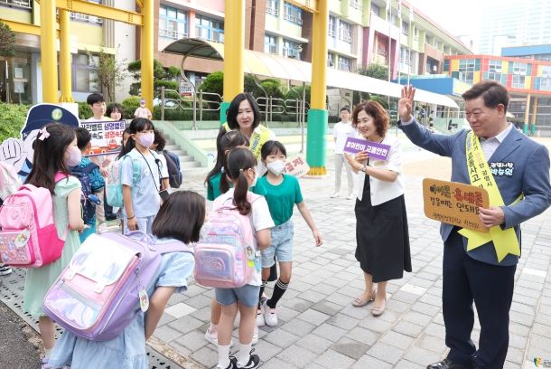 이날 캠페인에는 박승원 광명시장을 비롯한 시 관계자와 광명경찰서, 녹색어머니회, 모범운전자회, 광성초학부모위원회 등 50여 명이 참여했다.